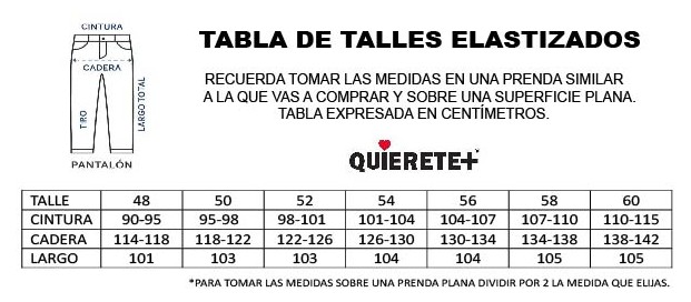 Para elegir tu talle te recomendamos medir una prenda similar que tengas en casa con un centímetro, colocándola sobre una superficie plana. Compará esas medidas con las de nuestra prenda. Recuerda verificar la parte de elasticidad para ver hasta cuantos centímetros se estira.
